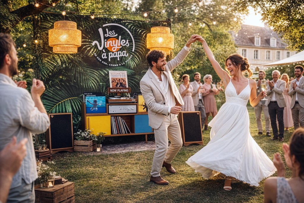 Au-delà de l’esthétique, ce bar à vinyle mariage permet aussi de sonoriser le vin d’honneur, le repas et la soirée dansante. Les invités peuvent parcourir les disques, partager leurs souvenirs musicaux et profiter d’une ambiance chaleureuse et conviviale tout au long du mariage.